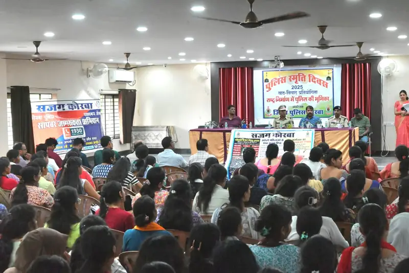 The Duniyadari : कोरबा, 28 अक्टूबर। अग्रसेन कन्या महाविद्यालय में सोमवार को पुलिस स्मृति दिवस के उपलक्ष्य में एक विशेष कार्यक्रम आयोजित किया गया, जिसमें शस्त्र प्रदर्शनी के साथ “राष्ट्र निर्माण में पुलिस की भूमिका” विषय पर वाद-विवाद प्रतियोगिता संपन्न हुई। यह आयोजन पुलिस अधीक्षक सिद्धार्थ तिवारी के निर्देशन और अतिरिक्त पुलिस अधीक्षक नीतिश ठाकुर के मार्गदर्शन में हुआ।
