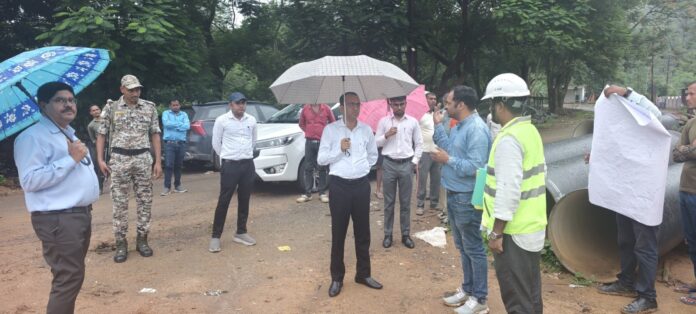 कोरबा 02 जुलाई 2025/ कलेक्टर अजीत वसंत ने आज पोड़ी उपरोड़ा विकासखंड के एतमानगर में निर्माणाधीन जल शोधन संयंत्र का औचक निरीक्षण किया। उन्होंने परियोजना की वर्तमान प्रगति, निर्माण की समय-सीमा, कार्य में आ रही बाधा एवं समाधान संबंधी उपायों की विस्तृत जानकारी ली। इस अवसर पर सहायक कलेक्टर श्री क्षितिज गुरभेले, एसडीएम पोड़ी उपरोड़ा श्री टी आर भारद्वाज, लोक स्वास्थ्य यांत्रिकी, जल संसाधन विभाग के अधिकारी सहित अन्य विभागीय अधिकारी उपस्थित थे।
