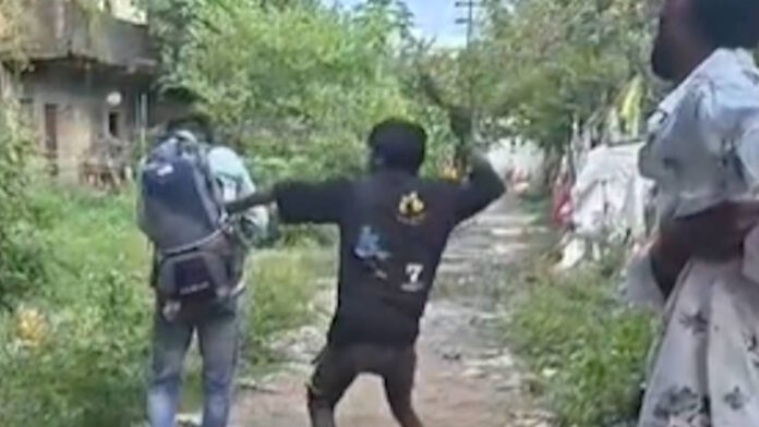 The Duniyadari :कोरबा। जिले के खरमोरा अटल आवास में नशे में धुत एक युवक ने दो युवकों को करीब आधे घंटे तक बेल्ट से पीटकर दहशत फैला दी। प्रताड़ना झेल रहे युवक बार-बार हाथ जोड़कर छोड़ देने की गुहार लगाते रहे, लेकिन आरोपी लगातार मारपीट करता रहा। घटना के दौरान आसपास मौजूद लोग बीच-बचाव करने के बजाय मोबाइल से वीडियो बनाते रहे, जो अब सोशल मीडिया पर वायरल हो गया है।