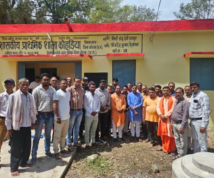 The Duniyadari :कोरबा। वार्ड क्रमांक 18 कोहड़िया अंतर्गत जिला खनिज न्यास मद (DMF) से 16 लाख 69 हजार रुपये की लागत से निर्मित शासकीय प्राथमिक शाला पीपरपारा (कोहड़िया) के नवीन भवन का लोकार्पण रविवार को पार्षद एवं भाजयूमो जिला महामंत्री नरेंद्र देवांगन ने विधिवत पूजा-अर्चना एवं फीता काटकर किया।