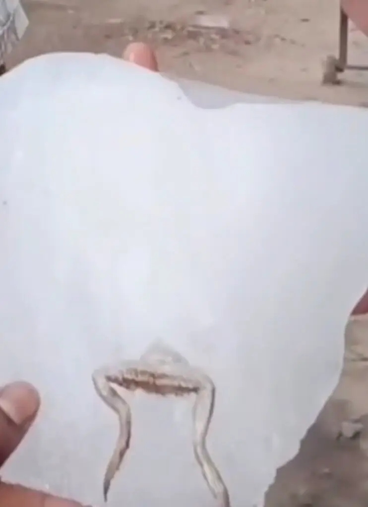 बर्फ की सिल्ली में मिला मेंढक, ग्राहकों ने जताई नाराजगी