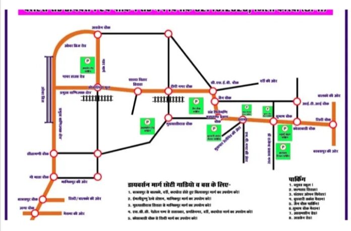 त्योहार के दौरान वाहन खड़े करने की दिक्कत न हो, इसके लिए आठ स्थानों को पार्किंग प्वाइंट बनाया गया है—ब्लू बर्ड स्कूल, कल्पतरु तिराहा, घंटाघर ओपन ग्राउंड, बुधवारी बाजार सर्कस मैदान, सुभाष चौक मैदान, जैन चौक मैदान, आरामशीन रोड और अग्रसेन रोड।