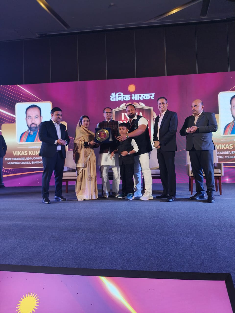 The Duniyadari : कोरबा: जिले के नगर पालिका परिषद बांकीमोंगरा की अध्यक्ष श्रीमती सोनी विकास व भाजयुमो छत्तीसगढ़ प्रदेश कोषाध्यक्ष विकास झा जी को नगर पालिका परिषद बांकीमोंगरा क्षेत्र में उत्कृष्ट कार्यों के लिए 25 नवंबर 2025 को इंडिया प्राइड अवार्ड से सम्मानित किया गया। नई दिल्ली में दैनिक भास्कर द्वारा आयोजित भव्य सम्मान समारोह में मध्यप्रदेश के पूर्व मुख्यमंत्री एवं केंद्रीय मंत्री शिवराज सिंह चौहान ने यह प्रतिष्ठित सम्मान प्रदान किया, इस अवसर पर दैनिक भास्कर की पूरी टीम उपस्थित रहे