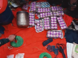 पखांजूर, 15 फरवरी। नक्सल प्रभावित इलाके में चलाए गए सर्च अभियान के दौरान सुरक्षाबलों को अहम सफलता मिली है। संयुक्त कार्रवाई में जवानों ने जंगल में छिपाकर रखी गई नक्सल सामग्री का बड़ा जखीरा बरामद किया है, जिसमें हथियारों के साथ कई विस्फोटक उपकरण भी शामिल हैं।