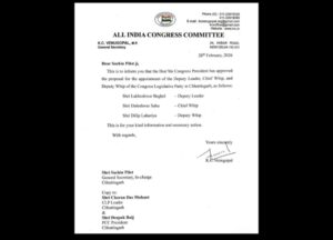 प्रदेश कांग्रेस ने बस्तर क्षेत्र से आने वाले वरिष्ठ विधायक लखेश्वर बघेल को उपनेता प्रतिपक्ष की जिम्मेदारी दी है। इसके साथ ही संगठन में संतुलन और प्रभावी समन्वय के लिए अन्य पदों पर भी नियुक्तियां की गई हैं—
