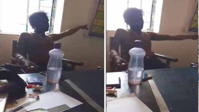 सूत्रों के मुताबिक, 14 अक्टूबर को दोपहर में वह कक्षा में शिक्षिका और विद्यार्थियों के सामने अभद्र भाषा का प्रयोग करने लगा और फिर अपनी शर्ट उतारकर कुर्सी पर बैठ गया। उसकी हरकत देखकर बच्चे सहम गए। इस दौरान मौजूद किसी व्यक्ति ने वीडियो बना लिया, जो अब वायरल हो चुका है।