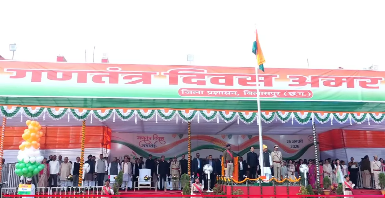 The Duniyadari : बिलासपुर में 77वें गणतंत्र दिवस के अवसर पर मुख्यमंत्री विष्णु देव साय ने ध्वजारोहण किया। छत्तीसगढ़ सहित पूरे देश में गणतंत्र दिवस उत्साह और गौरव के साथ मनाया जा रहा है। राष्ट्रीय स्तर पर आयोजित समारोह में भारत की विकास यात्रा, सांस्कृतिक विविधता और सैन्य सामर्थ्य की प्रभावशाली झलक देखने को मिलेगी।