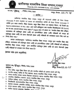 The Duniyadari: रायपुर- भारतीय शिक्षा बोर्ड हरिद्वार अब छत्तीसगढ़ में माध्यमिक शिक्षा मंडल के 10 वी एवं 12 वी बोर्ड के समकक्ष मान्य होगा। माशिमं सचिव ने यह आदेश आज जारी कर दिया है।