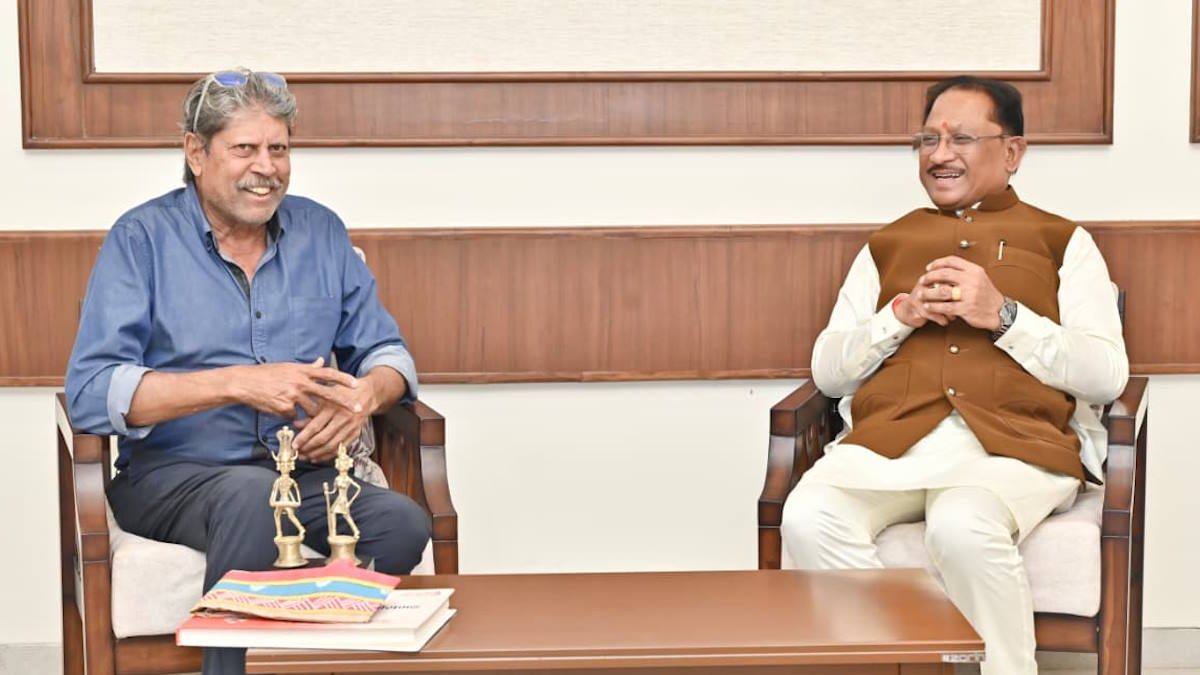 The Duniyadari: रायपुर। मुख्यमंत्री विष्णु देव साय से आज नया रायपुर स्थित मुख्यमंत्री निवास कार्यालय में भारतीय क्रिकेट टीम के पूर्व कप्तान कपिल देव ने शिष्टाचार भेंट की।