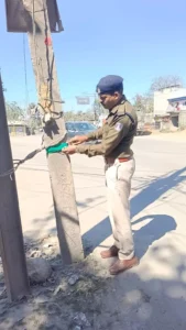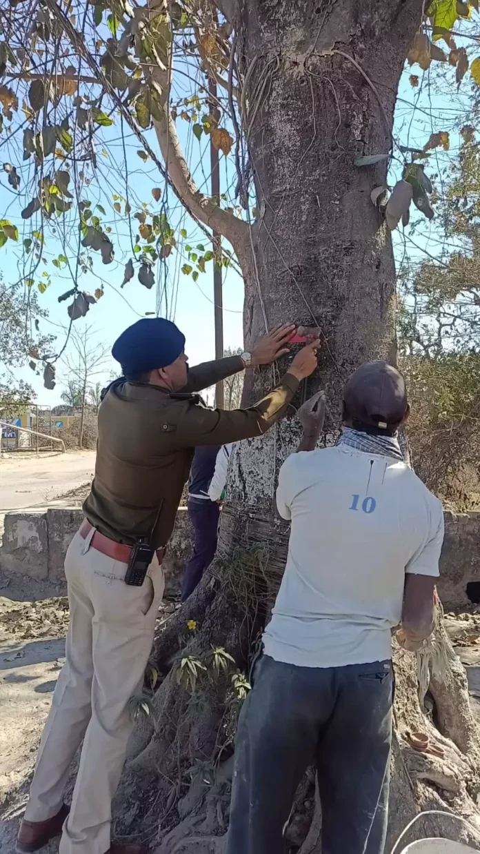 रात में हादसे रोकने के लिए कोरबा ट्रैफिक पुलिस की नई पहल, पेड़ों और पशुओं पर लगाए रिफ्लेक्टर