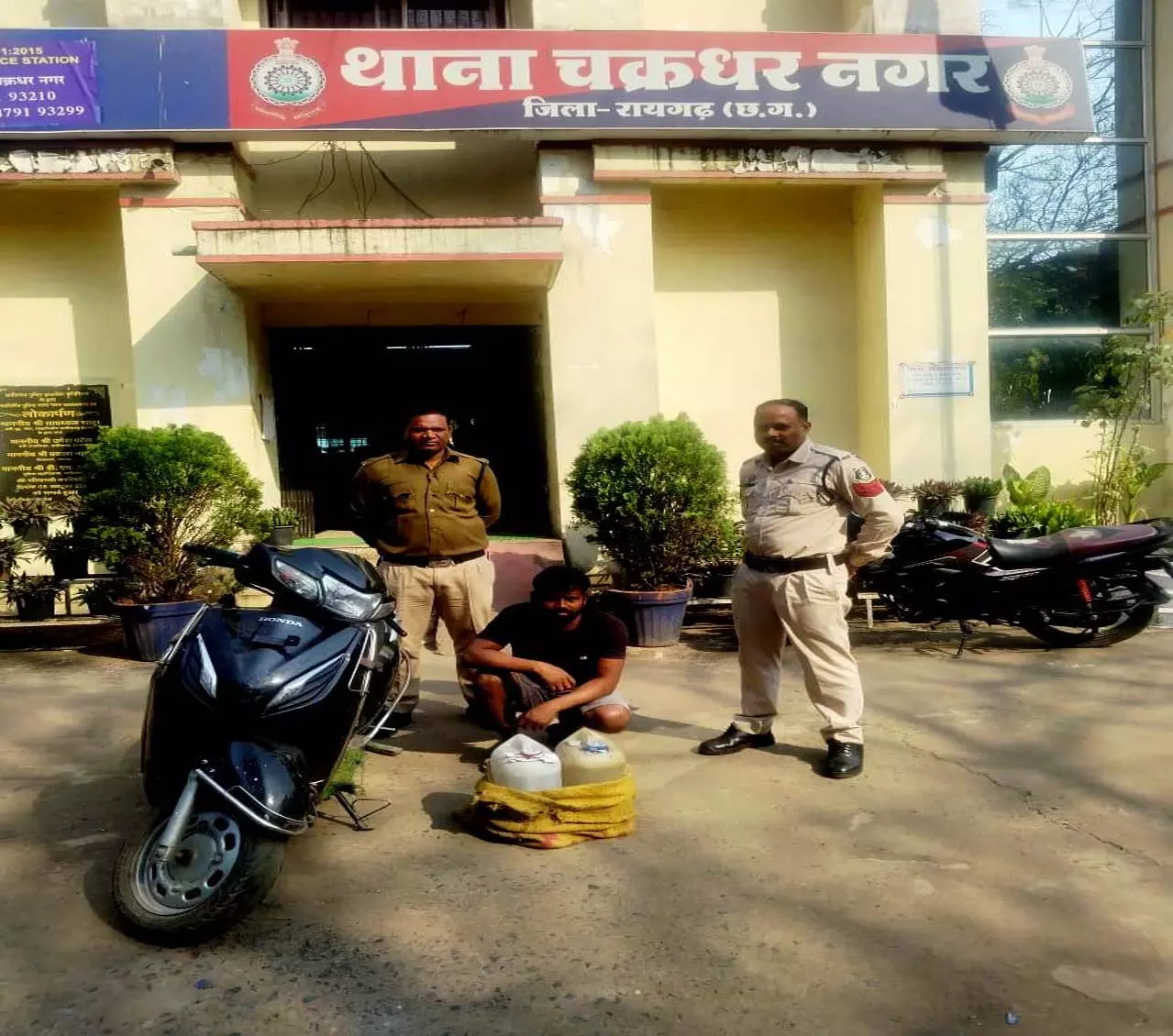 The Duniyadari : रायगढ़। चक्रधरनगर थाना क्षेत्र में पुलिस ने अवैध शराब के परिवहन की कोशिश को नाकाम करते हुए एक युवक को गिरफ़्तार किया है। यह कार्रवाई 15 नवंबर 2025 को उस समय की गई, जब पुलिस को गुप्त सूचना मिली कि एक युवक स्कूटी से महुआ शराब लेकर रेगड़ा की ओर जाने वाला है।