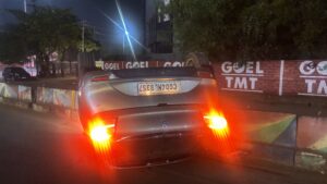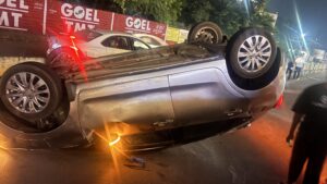 The Duniyadari : रायपुर। राजधानी के वीआईपी रोड स्थित राम मंदिर के पास रविवार रात 1:12 am बजे एक तेज रफ्तार मारुति बलेनो कार अनियंत्रित होकर डिवाइडर से टकराई और सड़क पर पलट गई। हादसे में ड्यूटी पर तैनात टेलीबांधा थाना के यातायात पुलिसकर्मी को कार ने जोरदार टक्कर मारी, जिससे वे गंभीर रूप से घायल हो गए।