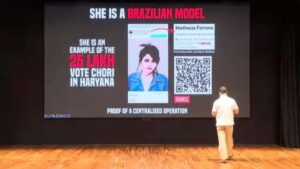 The Duniyadari :नई दिल्ली। कांग्रेस नेता और लोकसभा में विपक्ष के नेता राहुल गांधी ने बुधवार को वोट चोरी के मुद्दे पर केंद्र सरकार और चुनाव आयोग को कठघरे में खड़ा कर दिया। राजधानी दिल्ली के इंदिरा भवन में प्रेस कॉन्फ्रेंस कर उन्होंने दावा किया कि हरियाणा विधानसभा चुनाव में करीब 25 लाख फर्जी वोट डाले गए और यह कोई सामान्य गड़बड़ी नहीं, बल्कि “सुनियोजित साजिश” है।