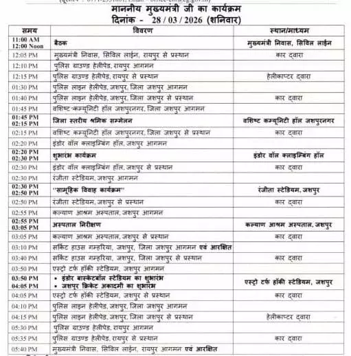 The Duniyadari: विष्णुदेव साय आज जशपुर जिले के प्रवास पर रहेंगे। इस दौरान वे सामूहिक कन्या विवाह कार्यक्रम में शामिल होकर 240 नवविवाहित जोड़ों को आशीर्वाद देंगे। यह आयोजन रणजीता स्टेडियम में आयोजित किया जा रहा है, जहां पारंपरिक रीति-रिवाजों के साथ विवाह समारोह संपन्न होगा।