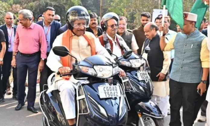सड़क सुरक्षा का संदेश: मुख्यमंत्री साय ने हेलमेट पहनकर स्कूटी चलाई, तस्वीरें हुईं वायरल