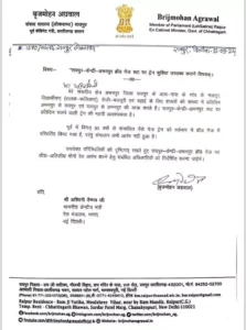 बृजमोहन अग्रवाल ने अपने पत्र में लिखा है कि, मेरे संसदीय क्षेत्र अभनपुर जिला रायपुर के आस-पास के गांव के मजदूर विद्यार्थीगण, और दूसरे दैनिक यात्री हजारों की संख्या में प्रतिदिन अभनपुर से रायपुर एवं रायपुर से अभनपुर की यात्रा करते है।