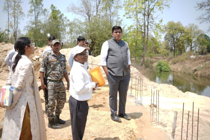 *तेंदूभांठा में निर्माणाधीन एनिकट का कलेक्टर ने किया निरीक्षण